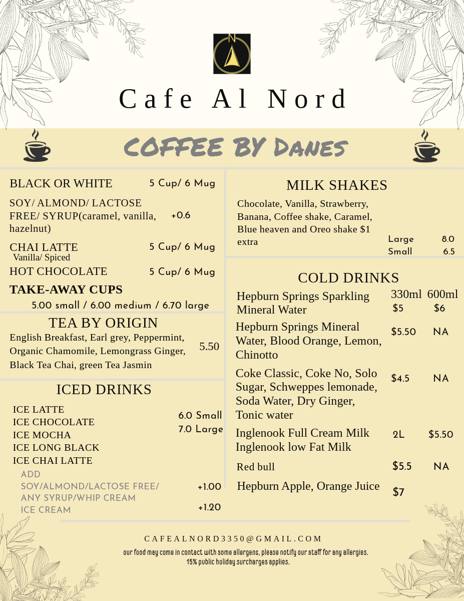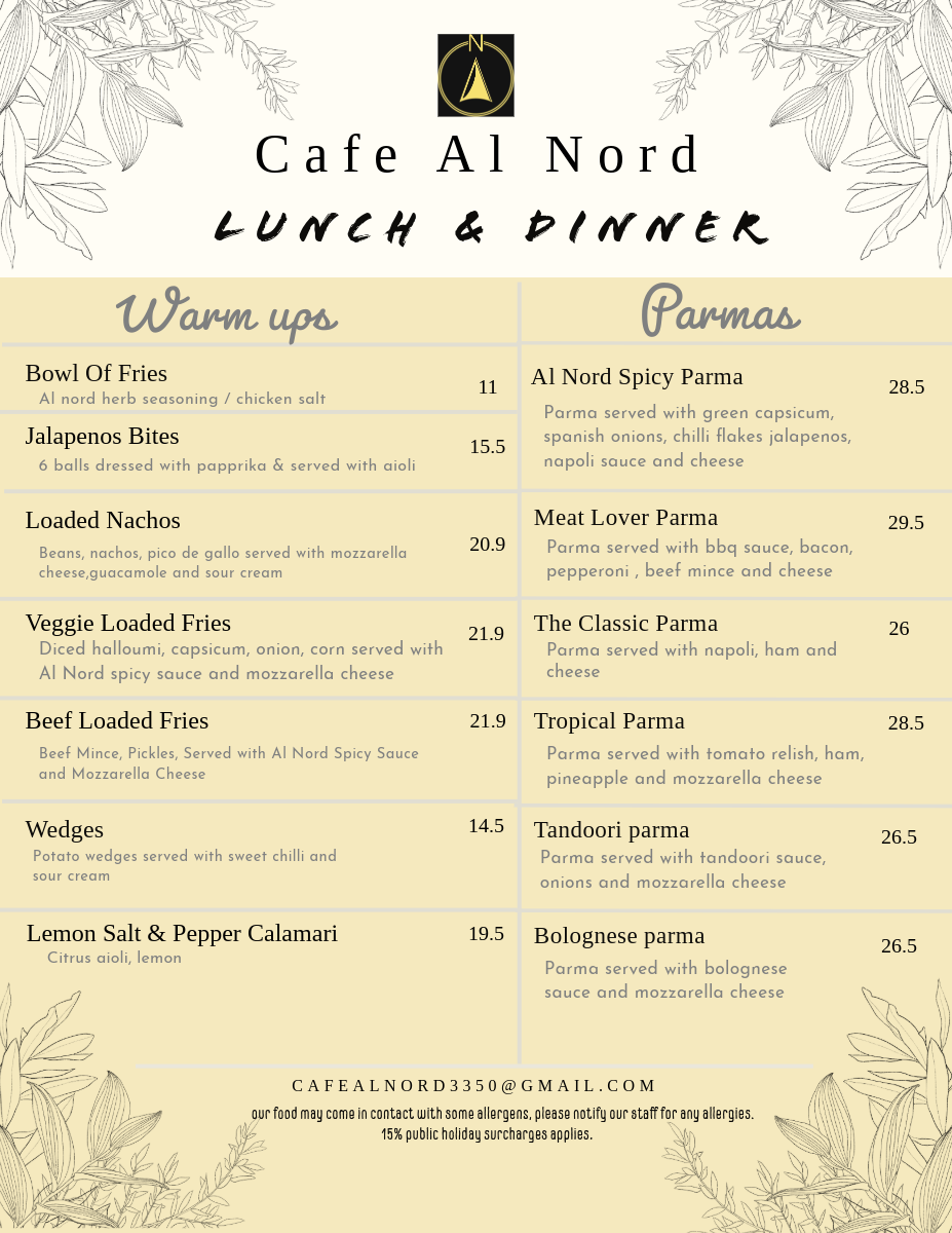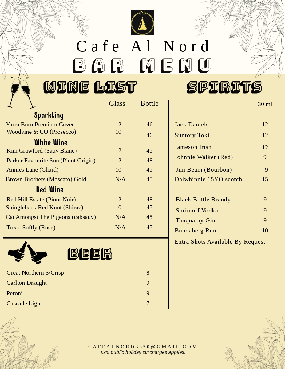 cafe al nord Menu