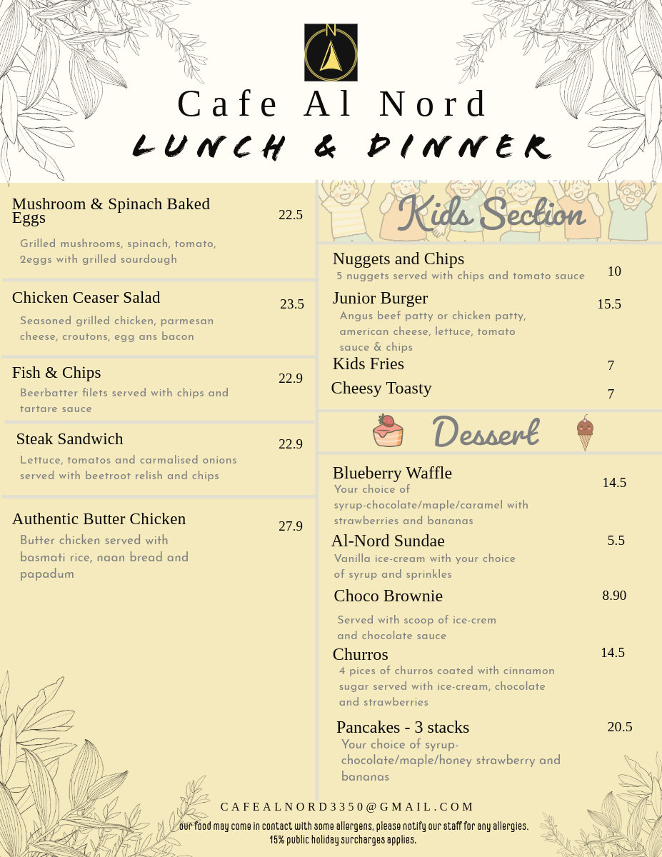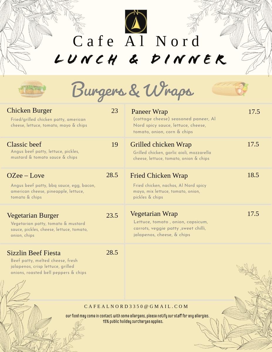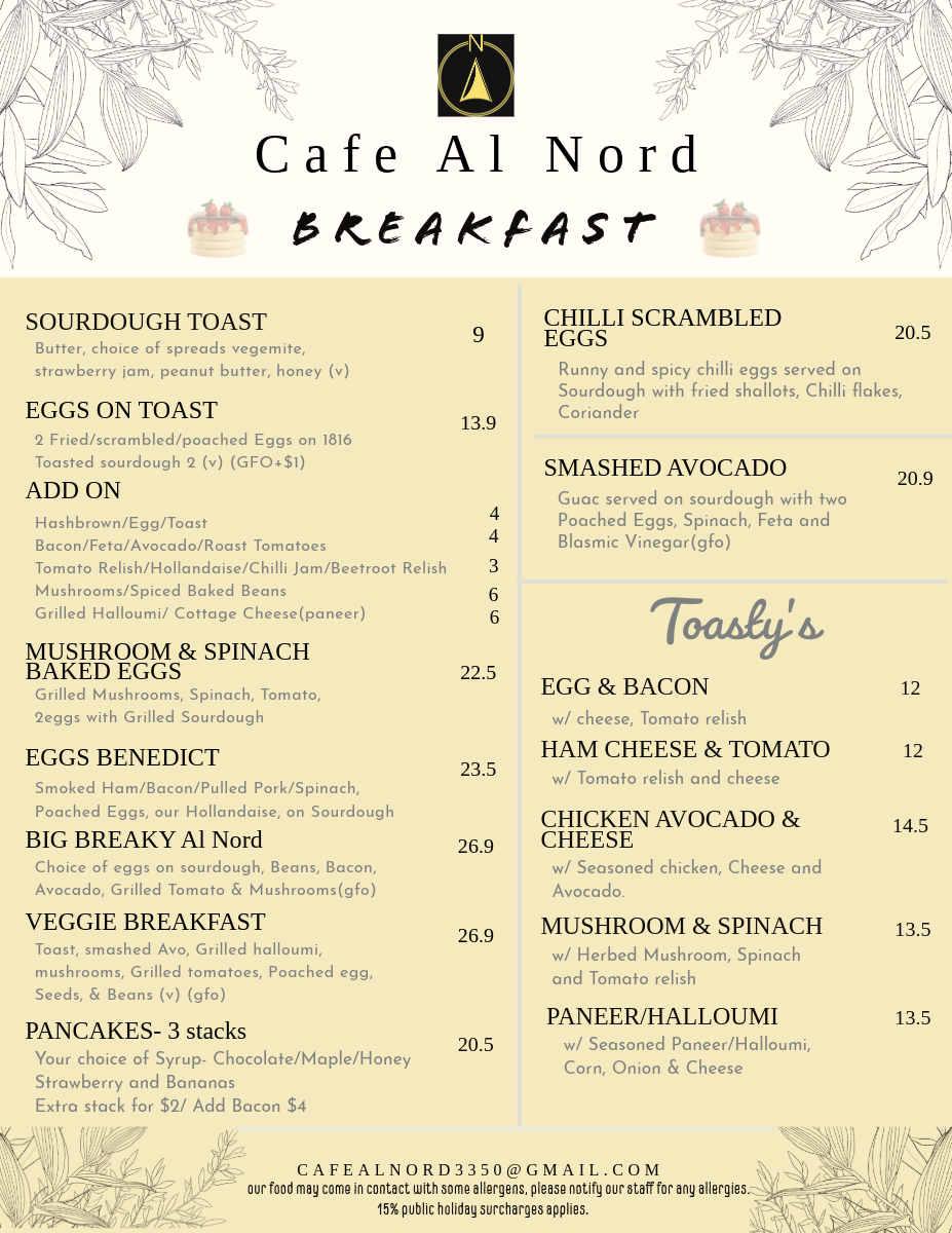 cafe al nord Menu